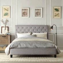 Кровать с тканевым изголовьем – не слишком распространенный вариант. Такие материалы не приемлют влажной уборки, их сложнее очищать от загрязнений, а также существует вероятность образования потертостей при частом использовании спинки как опоры для сидения.