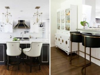 Чтобы подчеркнуть оригинальность кухонного пространства, можно приобрести стулья необычной формы или модели с наполнителем и обивкой. В качестве обивочного материала торговые марки используют кожу и плотный текстиль. Можно придумать съемные чехлы на пластиковые конструкции, заказав на сайте производителя или его официальных поставщиков, либо изготовив самостоятельно в домашних условиях.