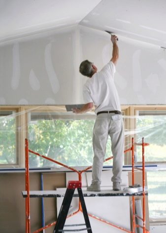 Отделочная работа, предполагающая работу с гипсокартонными листами, может проходить на большой высоте. Отделка потолочной поверхности становится тяжелым испытанием для человеческого организма. За счет значительного веса и габаритов держать гипсокартонный лист долгое время даже при наличии помощников, неудобно.