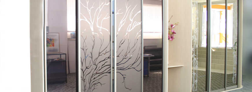 Достоинства и недостатки витража в пескоструйной технике для шкафа купе