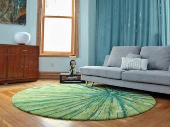 Лучше предпочесть прямоугольные ковры из натуральных или синтетических материалов, которые сочетаются с цветом мебели в комнате.