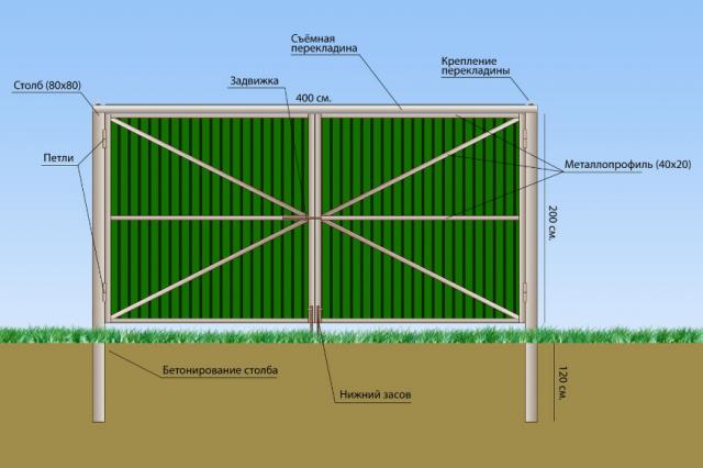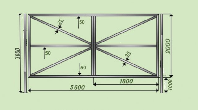 Важно! При создании собственного чертежа следует учитывать зазоры в несколько миллиметров между створками и столбами, а также между воротиной и грунтом.