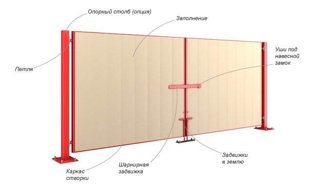 При пучении грунта зимой нагрузка на опорные столбы ворот может достигать до 10 т на 1 кв. м. Кроме того, они испытывают и существенную динамическую нагрузку в несколько сотен килограмм во время их открывания и закрывания. Поэтому для увеличения срока службы такой конструкции требуется надежная опора, углубленная в грунт на достаточную глубину.